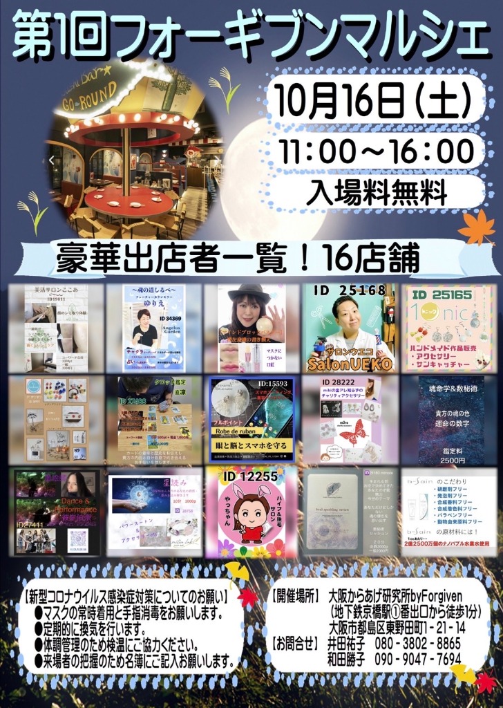 10/16 フォーギブンマルシェ@京橋 出店決定!